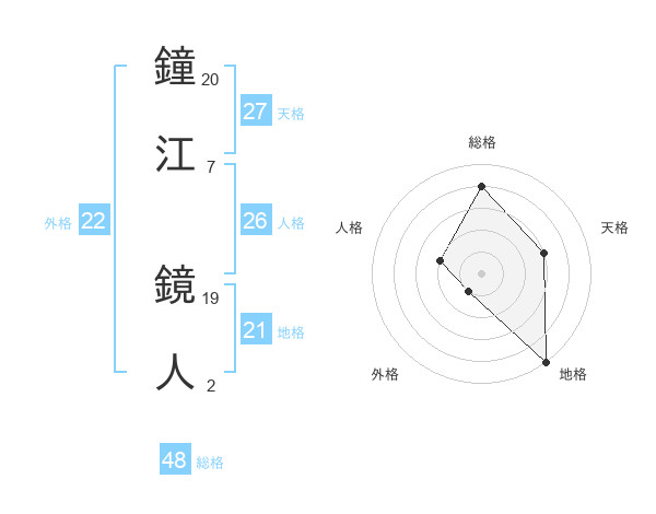 鐘江 鏡人さんを姓名の画数から五運を鑑定