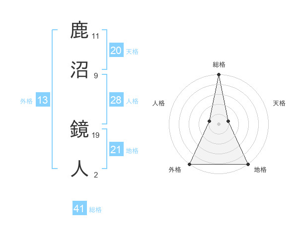 鹿沼 鏡人さんの外格は13画の5点!