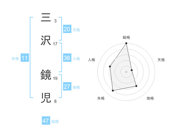 三沢 鏡児さんを姓名の画数から五運を鑑定
