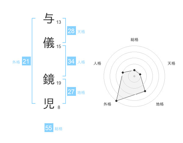 与儀 鏡児さんの外格は21画の5点!