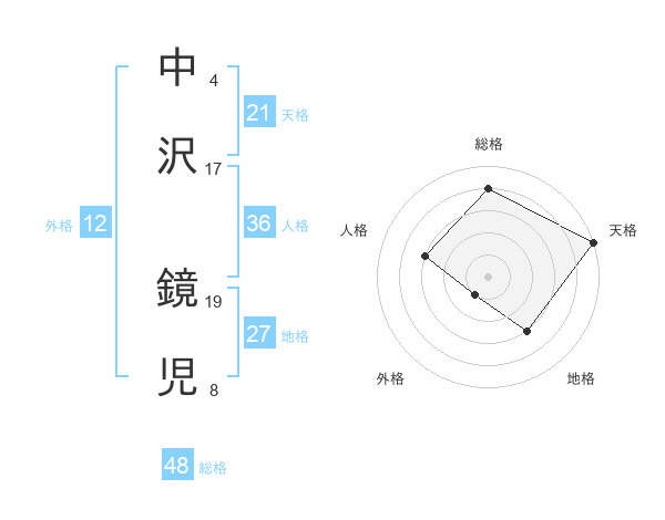 中沢 鏡児さんを姓名の画数から五運を鑑定