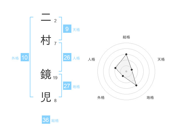 二村 鏡児さんを姓名の画数から五運を鑑定
