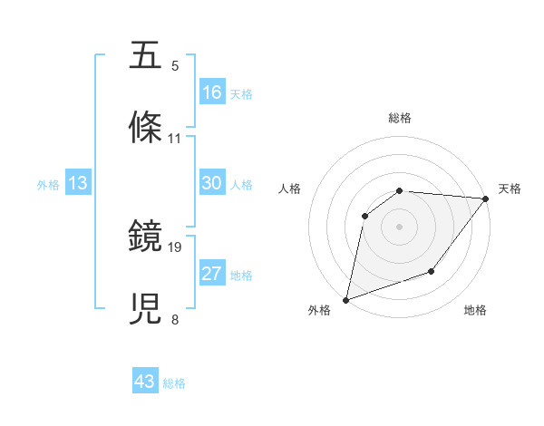 五條 鏡児さんの外格は13画の5点!