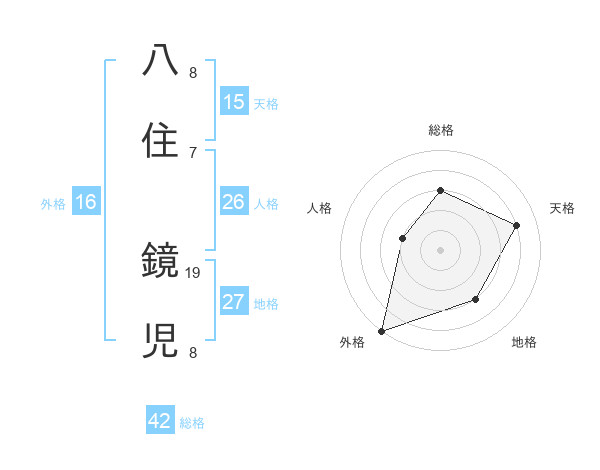 八住 鏡児さんを姓名の画数から五運を鑑定