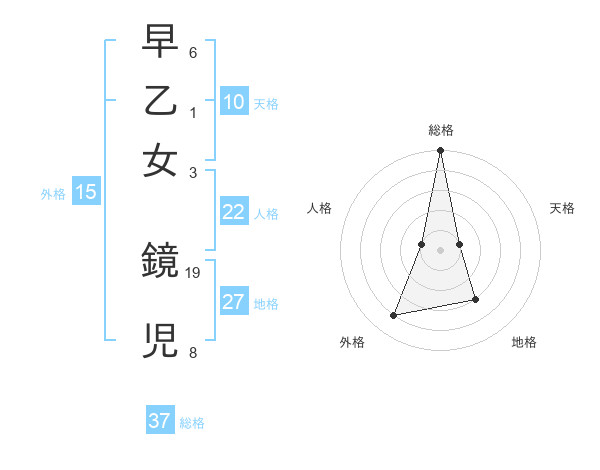 早乙女 鏡児さんを姓名の画数から五運を鑑定
