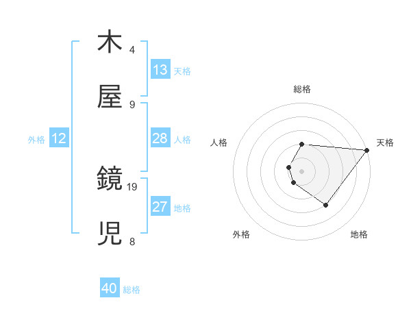 木屋 鏡児さんを姓名の画数から五運を鑑定