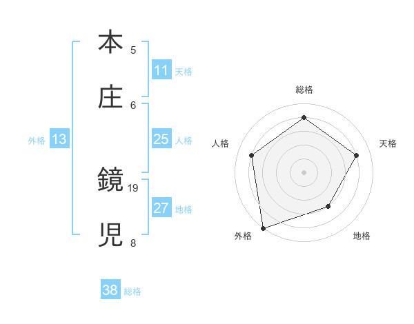 本庄 鏡児さんの外格は13画の5点!