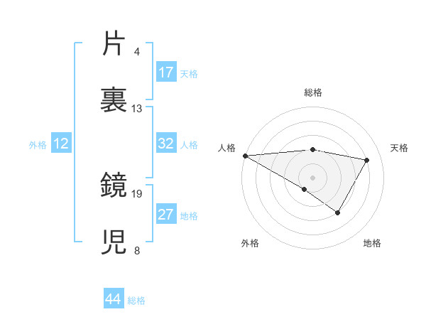 片裏 鏡児さんの天格は17画の4点!