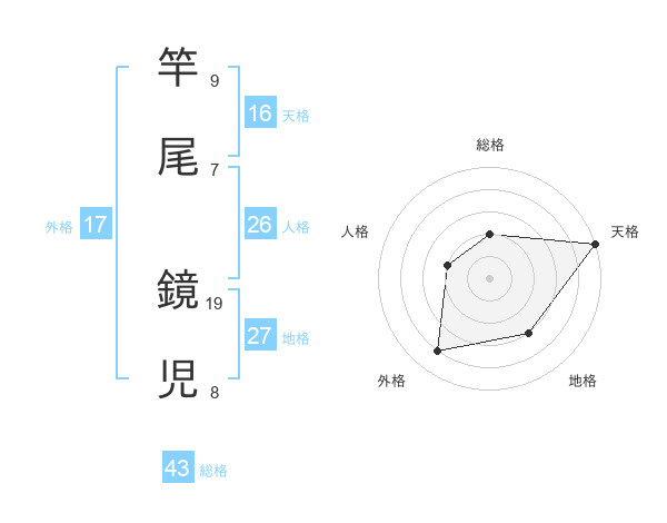 竿尾 鏡児さんの天格は16画の5点!