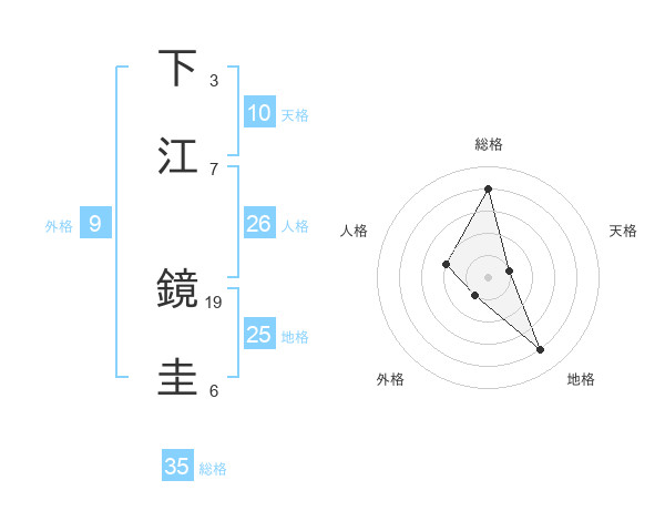 下江 鏡圭さんを姓名の画数から五運を鑑定