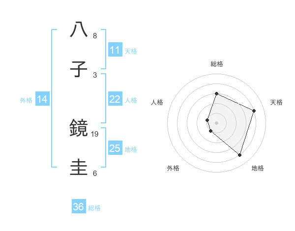 八子 鏡圭さんの天格は11画の4点!