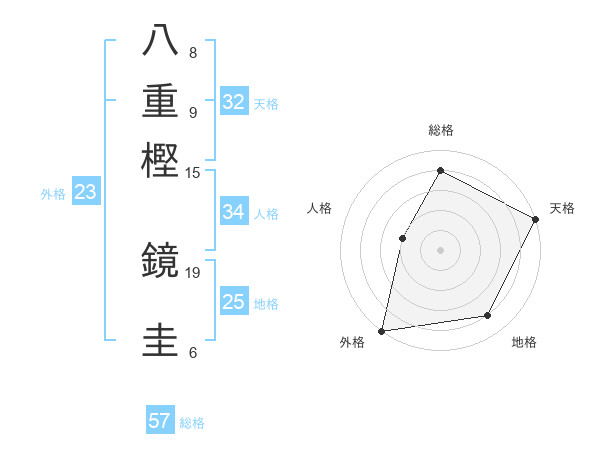 八重樫 鏡圭さんの総格は57画の4点!