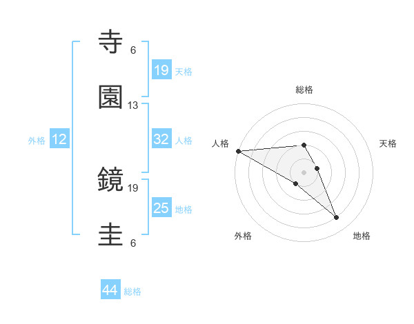 寺園 鏡圭さんの総格は44画の2点!