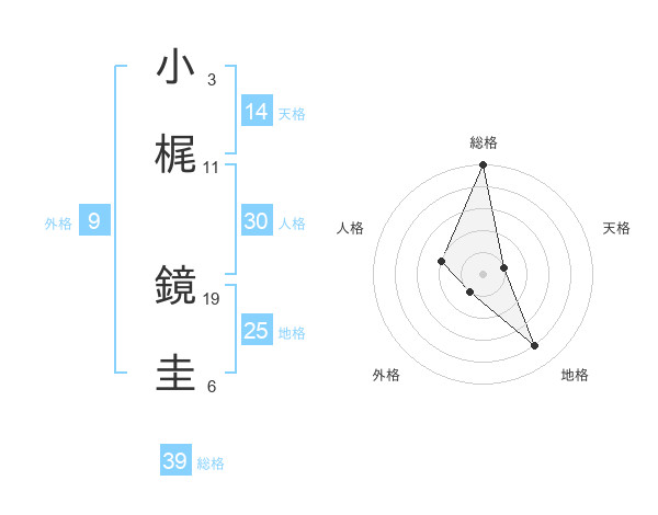 小梶 鏡圭さんの総格は39画の5点!