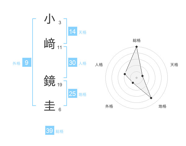 小﨑 鏡圭さんを姓名の画数から五運を鑑定