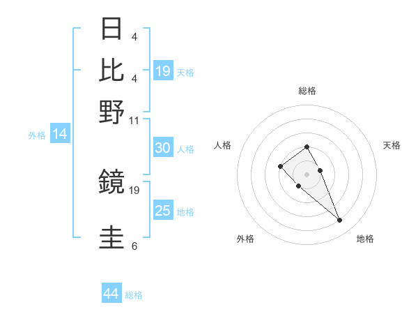 日比野 鏡圭さんの総格は44画の2点