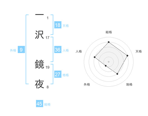 一沢 鏡夜さんを姓名の画数から五運を鑑定