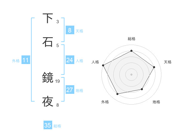 下石 鏡夜さんを姓名の画数から五運を鑑定