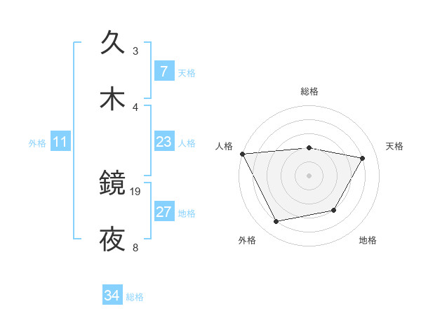 久木 鏡夜さんを姓名の画数から五運を鑑定