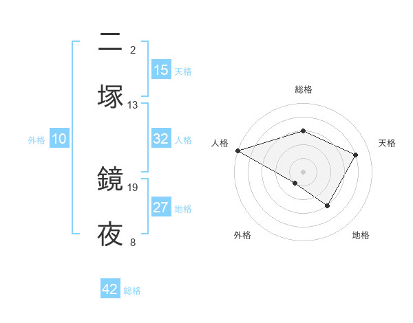 二塚 鏡夜さんを姓名の画数から五運を鑑定
