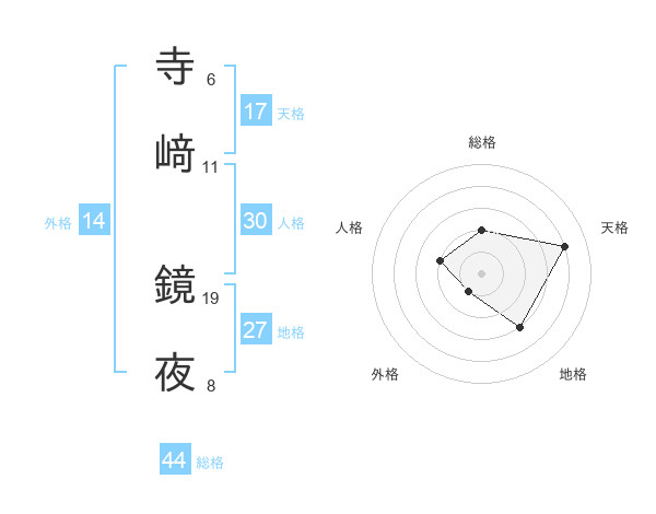 寺﨑 鏡夜さんの総格は44画の2点!