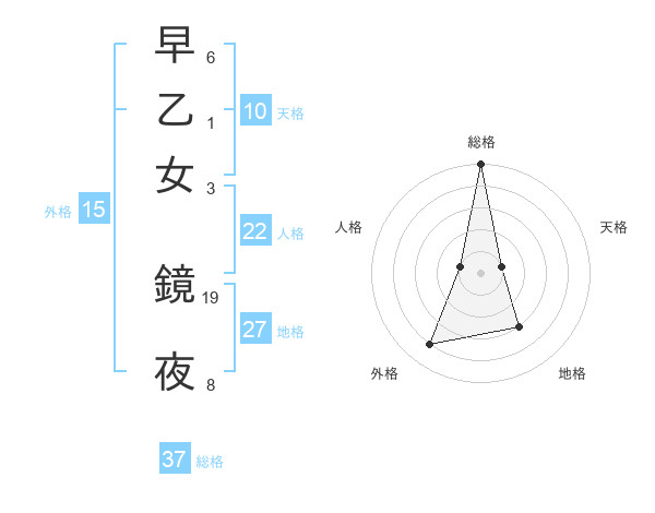 早乙女 鏡夜さんの総格は37画の5点!