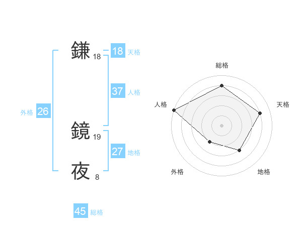 鎌 鏡夜さんの総格は45画の4点!