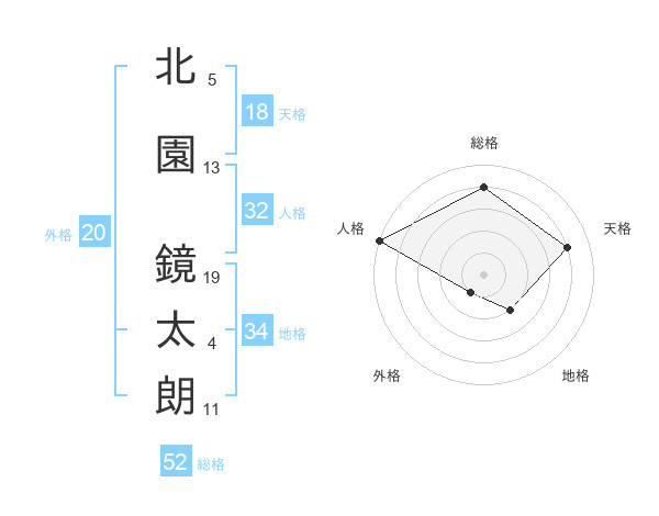 北園 鏡太朗さんを姓名の画数から五運を鑑定