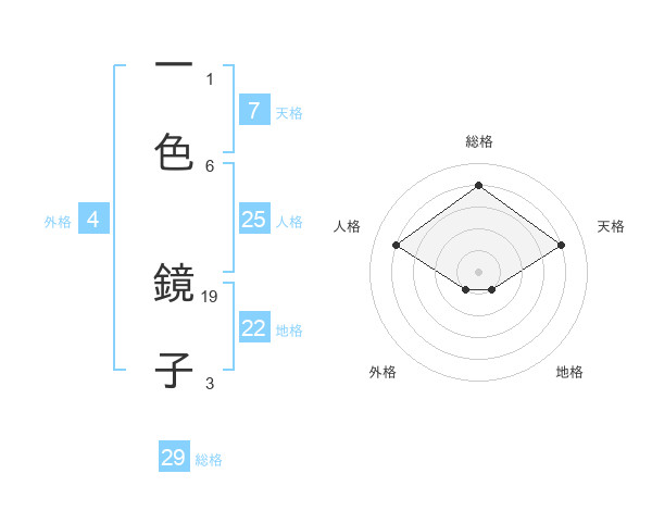 一色 鏡子さんを姓名の画数から五運を鑑定
