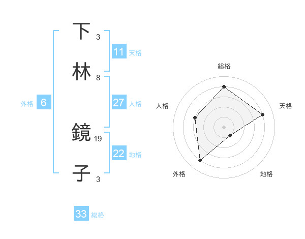 下林 鏡子さんを姓名の画数から五運を鑑定