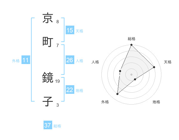 京町 鏡子さんを姓名の画数から五運を鑑定