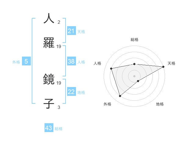 人羅 鏡子さんを姓名の画数から五運を鑑定