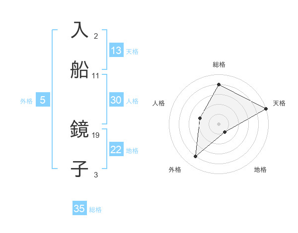 入船 鏡子さんを姓名の画数から五運を鑑定