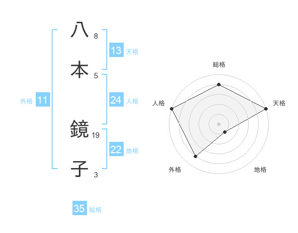 八本 鏡子さんの総格は35画の4点!