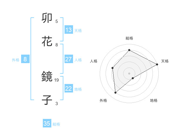 卯花 鏡子さんを姓名の画数から五運を鑑定