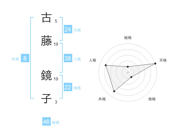 古藤 鏡子さんの人格は38画の4点!