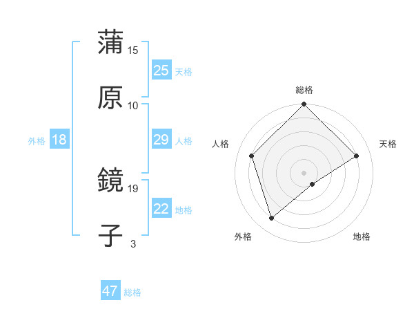 蒲原 鏡子さんを姓名の画数から五運を鑑定