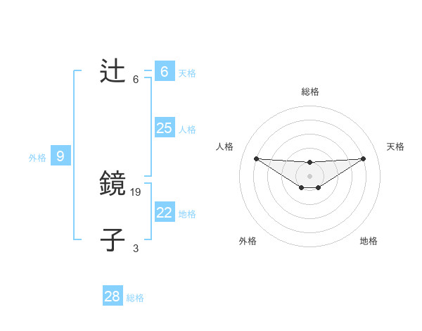 辻 鏡子さんの総格は28画の1点!