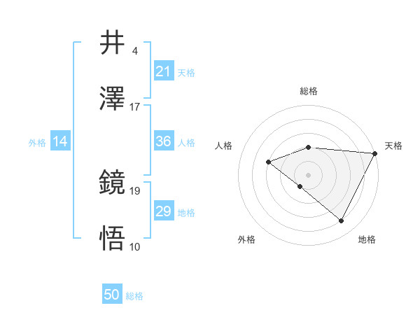 井澤 鏡悟さんの総格は50画の2点!