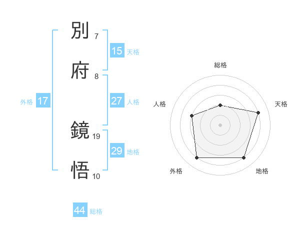 別府 鏡悟さんの総格は44画の2点!