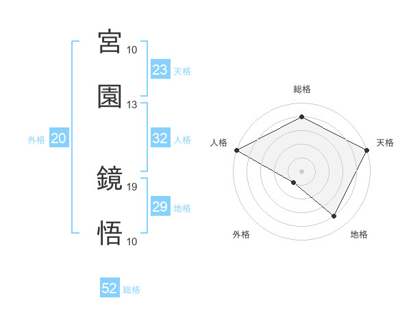 宮園 鏡悟さんを姓名の画数から五運を鑑定