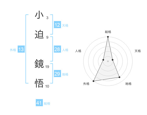 小迫 鏡悟さんの外格は13画の5点!
