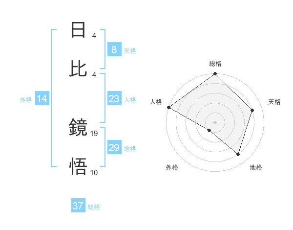 日比 鏡悟さんの総格は37画の5点!