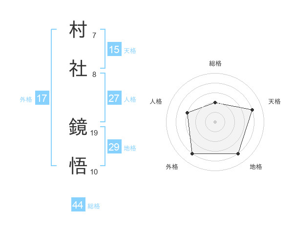 村社 鏡悟さんの総格は44画の2点!