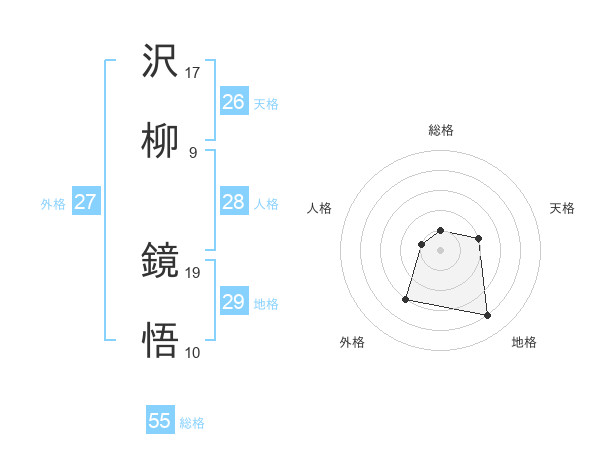 沢柳 鏡悟さんの天格は26画の2点!