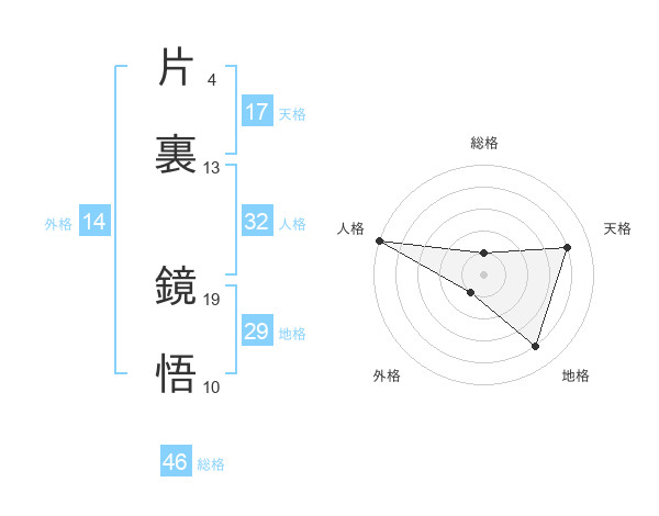 片裏 鏡悟さんを姓名の画数から五運を鑑定