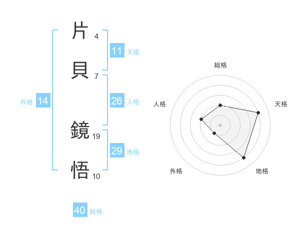 片貝 鏡悟さんの総格は40画の2点!