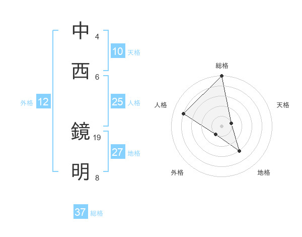 中西 鏡明さんの総格は37画の5点!