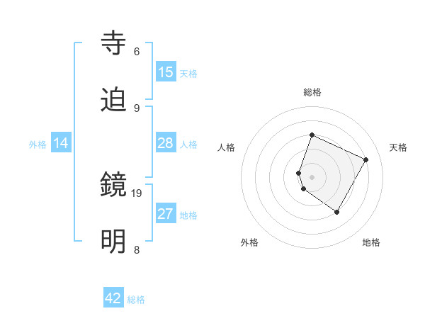 寺迫 鏡明さんの天格は15画の4点!