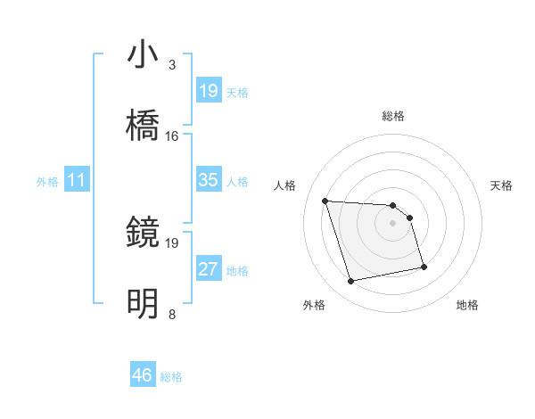 小橋 鏡明さんを姓名の画数から五運を鑑定